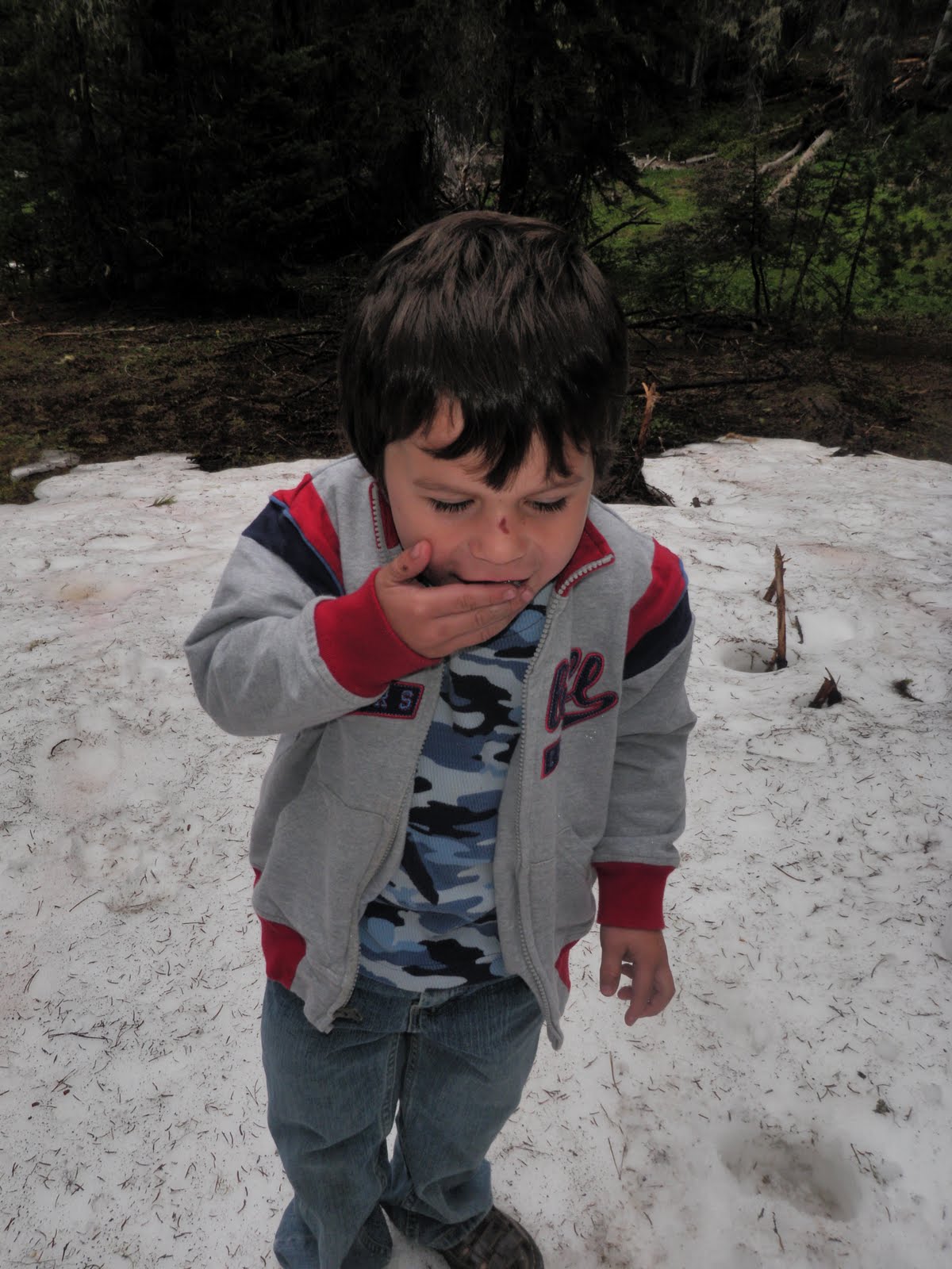 snow! And went for a hike. Kevin was really proud of the kids because they hiked up an extremely steep incline. It was a little harder to get back down then it was to get up!
